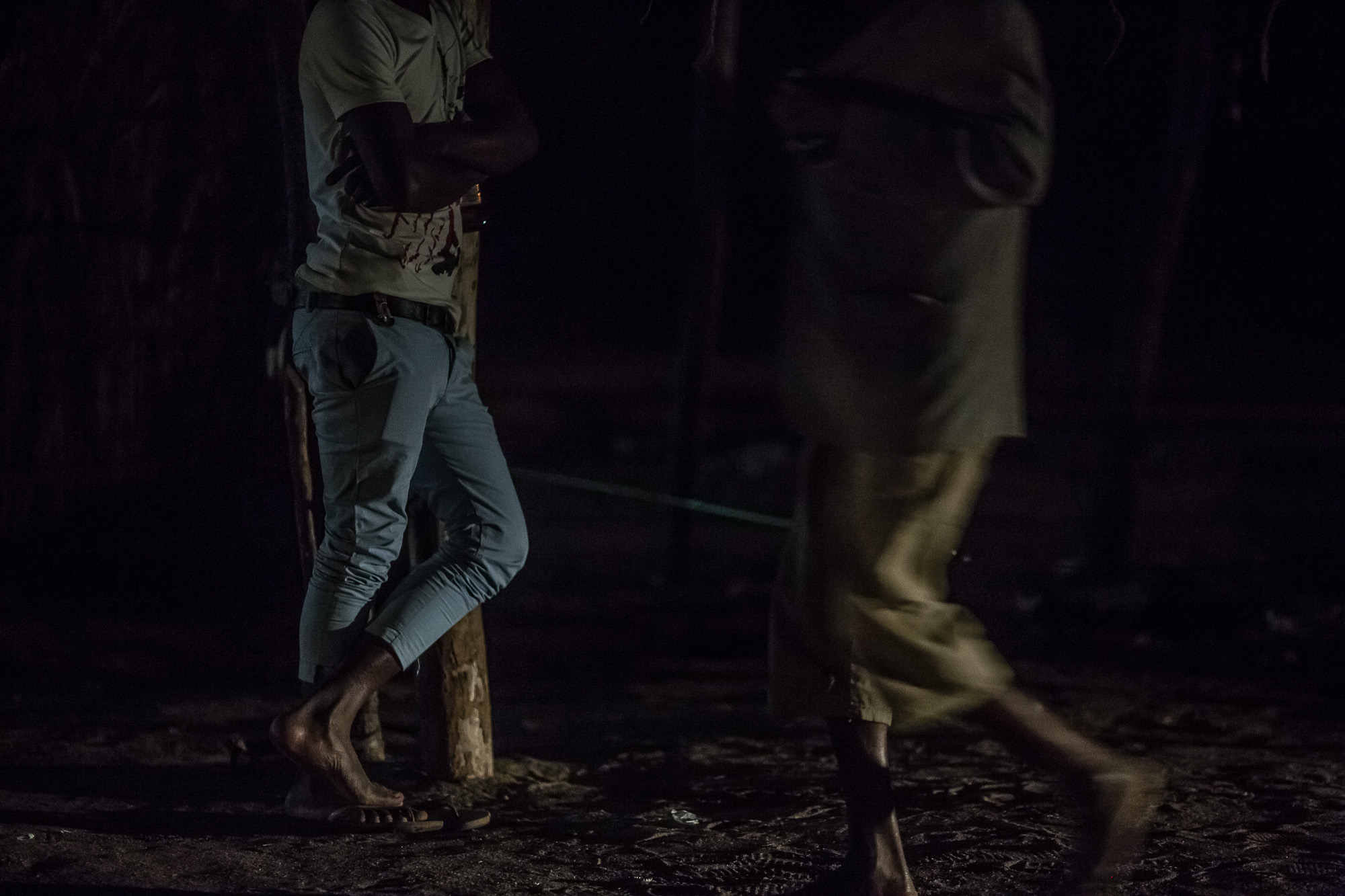 A skeleton of an old van decomposes in Salima's yard as her 5 children run around with others from the the Mascharinha neighborhood of Beira, Mozambique. The old tires, garbage and crumbling cement inside the walled compound serve as a playground. Inside her simple cement house, Salima watches TV with the kids. Their favorites are Brazilian novellas. This is how they pass most of their days—watching TV and playing in the yard. Then at 5PM Salima heads into town where she looks for work. She hangs around bars with other women looking for men who want to pay for sex.